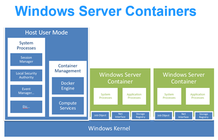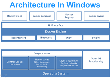 Par nature la technologie docker repose sur des facilités d’isolation offertes par le système d’exploitation Linux (les dernières versions de Linux sont compatibles docker). Afin de rendre possible la virtualisation applicative sous Windows, les ingénieurs Microsoft se sont penchés sur les services disponibles dans le noyau Windows afin d’implémenter les comportements isolation applicative, équivalente au système Linux.