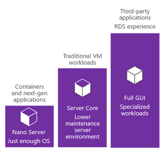 Il existe trois catégories de serveur dans l’offre Windows Server 2016 :