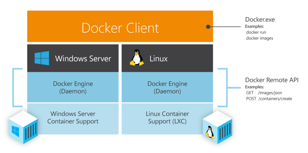 Pour réaliser l’implémentation native de docker sur Windows, Microsoft a lancé un portage du code du démon open source docker Linux (Docker Engine) sur le noyau Windows. Un tel portage au niveau système a forcément nécessité des adaptations afin de retrouver les comportements de la version originale sous Linux. Mais finalement, les ingénieurs Microsoft ont obtenu une première version du Docker Engine sur un noyau Windows légèrement modifié dans des délais très brefs. C’est ce travail de portage qui a permis à Microsoft de proposer la technologie Windows Containers.